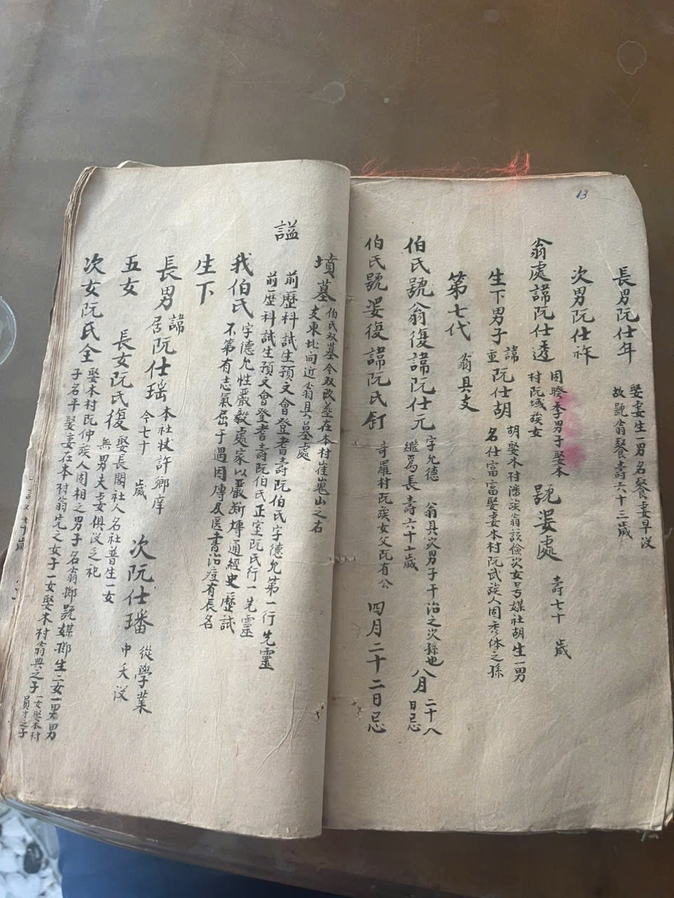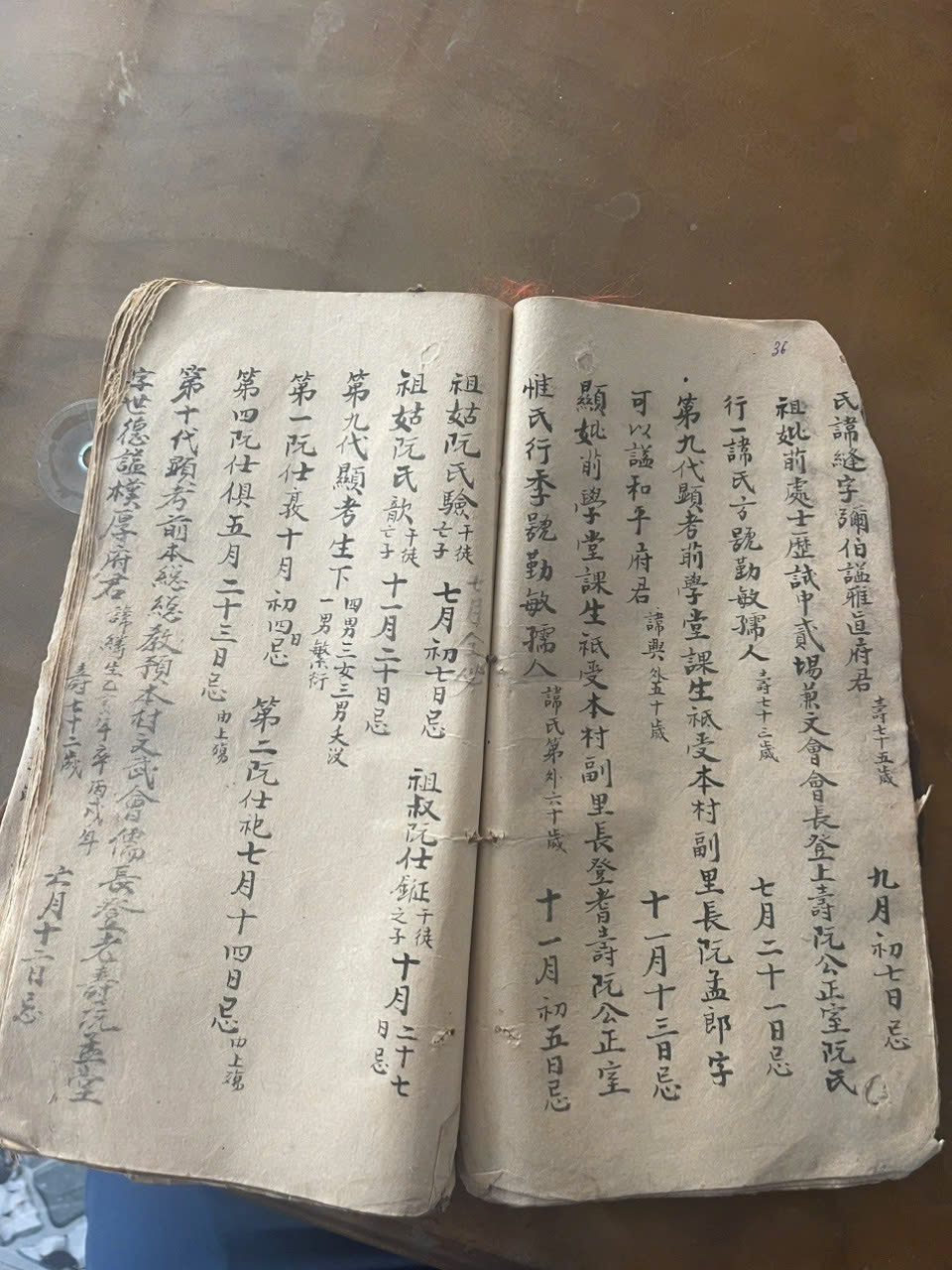 - Tổ Tỷ Tiền xử sĩ lịch thí Trúng nhị Trường kiêm đăng Hội Hội trưởng Đăng thượng thọ Nguyễn công chánh thất Nguyễn Thị hàng nhất húy Thị Phương, Hiệu Cần mẫn nhụ nhân, Thọ 73 tuổi, giỗ 21/7.