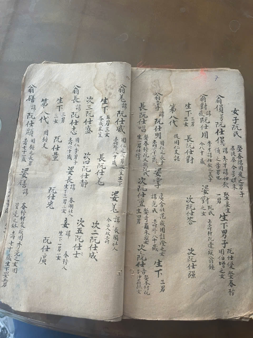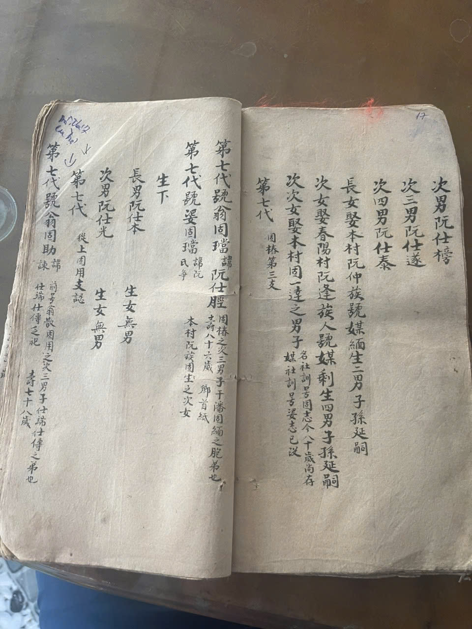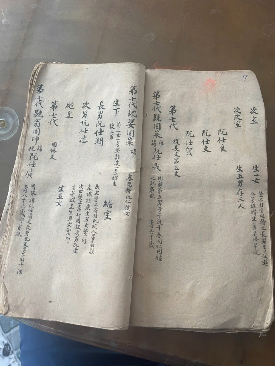 + Con gái Nguyễn Thị Cử sinh năm Quý Dậu 1873, có chồng Nguyễn ..., là con trai thứ của cố Trứ tại tổng Thuần Trung - thôn Mỹ Trung, Nay có hiệu mụ Nho Thành đã sinh được 2 trai - 3 gái