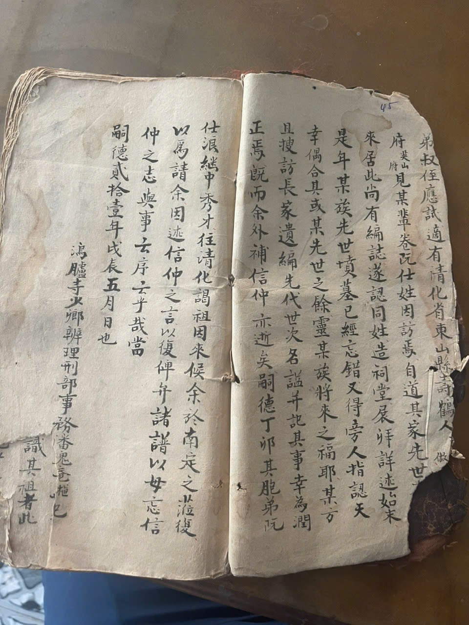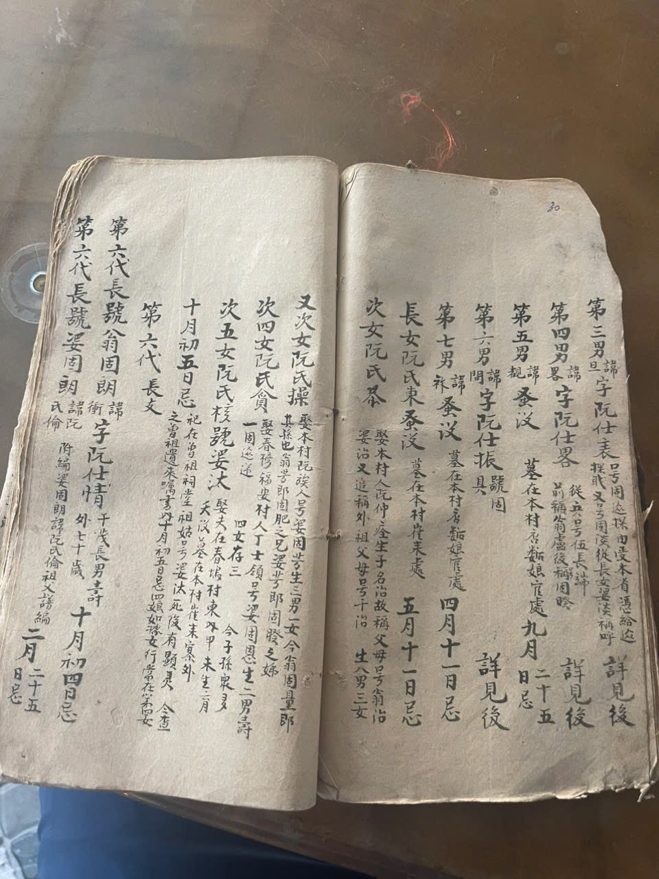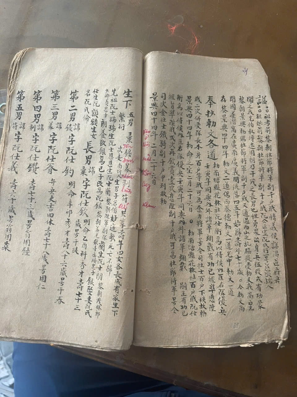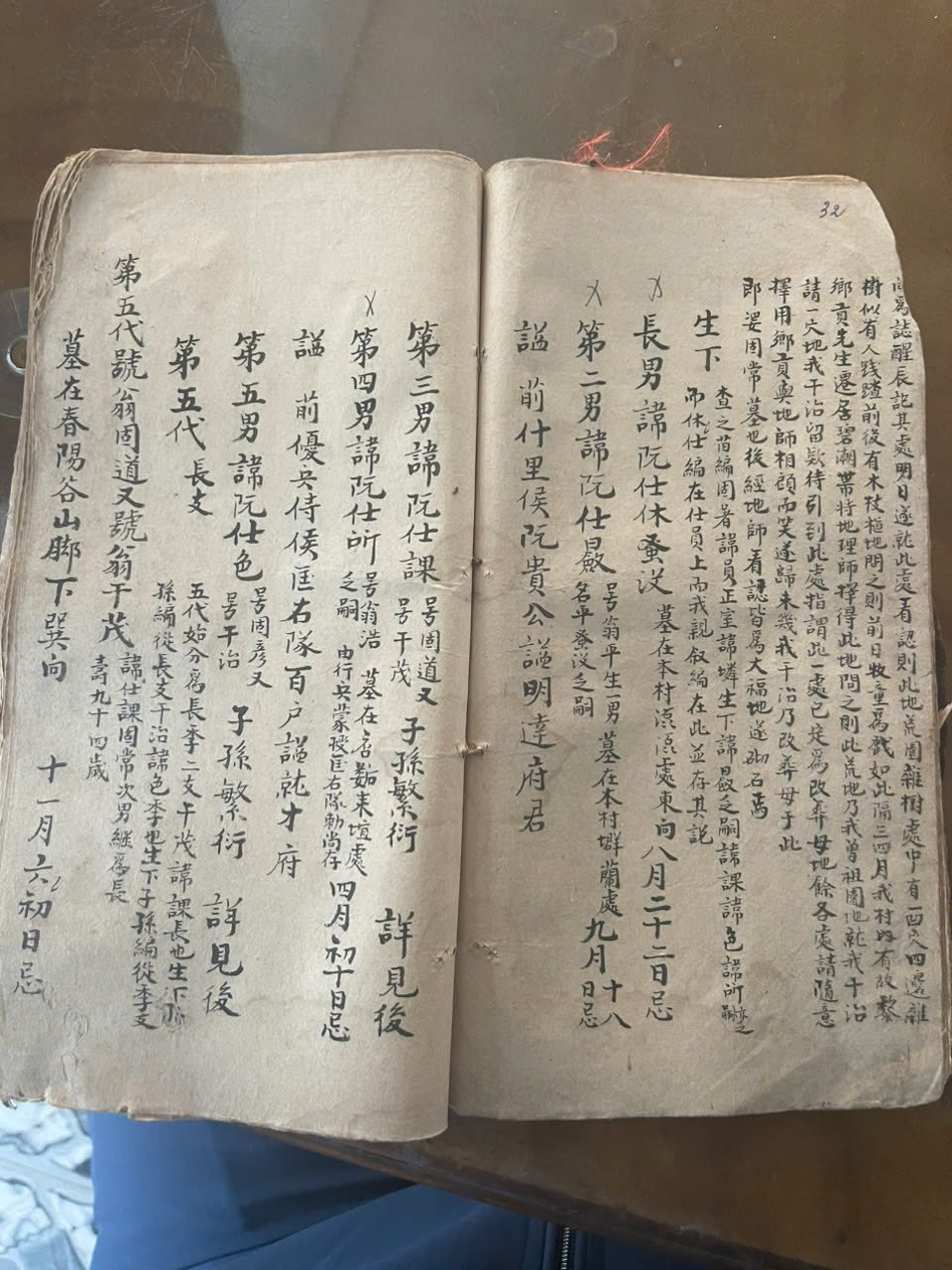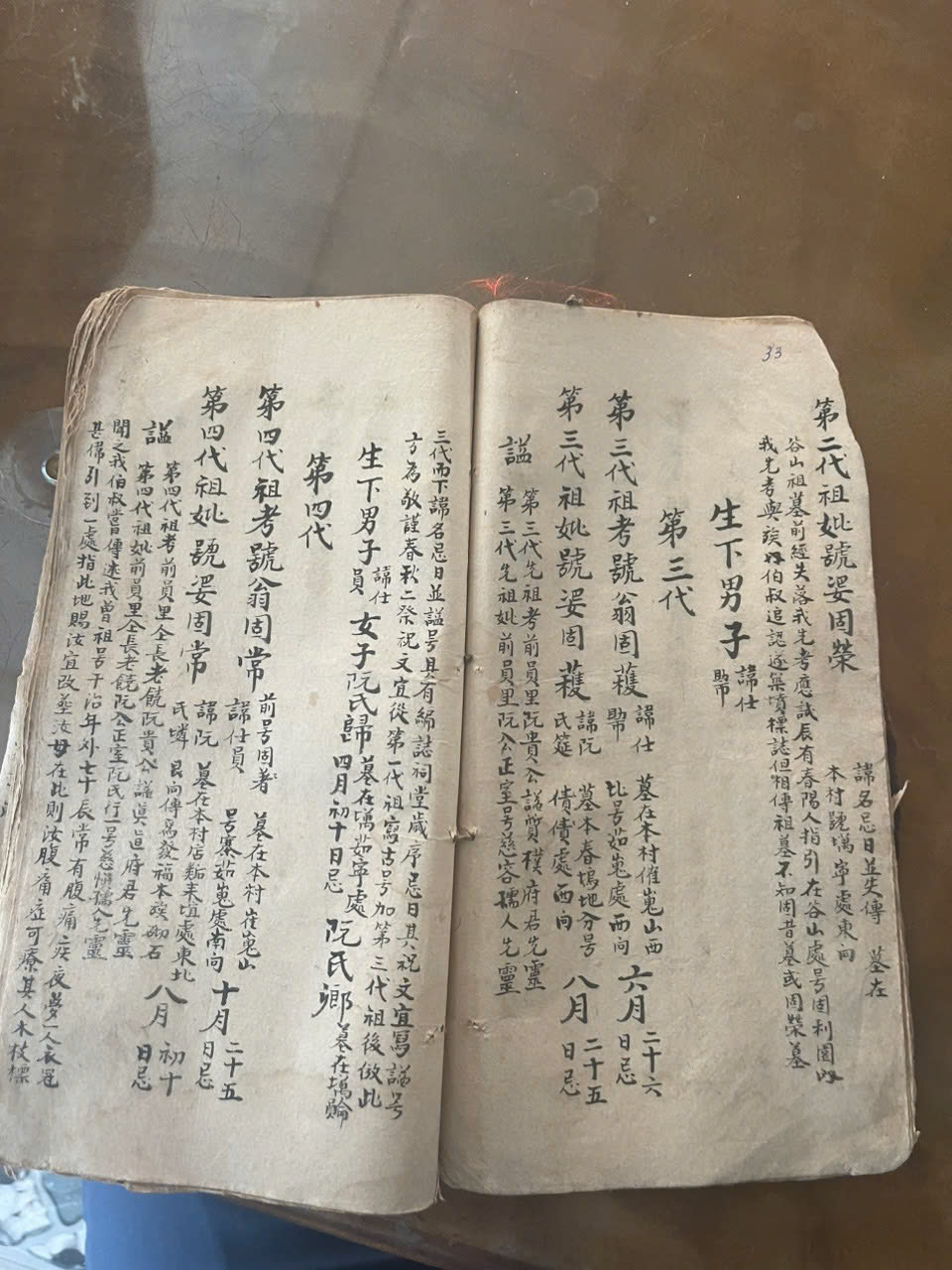Cũng vào năm đó Mộ phần Tổ tiên của tộc tôi bị rối lạc; may được người khác chỉ giùm, chắc lẽ do cơ trời hòa hợp gặp được sự linh ứng thiêng liêng của Tiên tổ nên đã gia ân phước cho bổn tộc thêm tương lai là vậy. Cũng từ đó các nhánh tộc ở địa phương mỗi một đều sưu tập, hỏi ghi lại lời kể của Trưởng nhánh về từng đời thứ Tiên tổ: Tên Hiệu - Tên Thụy cũng như các sự kiện liên can để viết thành cuốn gia phổ Chánh Tông lần này. Hẳn nhiên phần Tiên tổ quá cố được tu bổ theo đóng góp của Tín Trọng vậy.