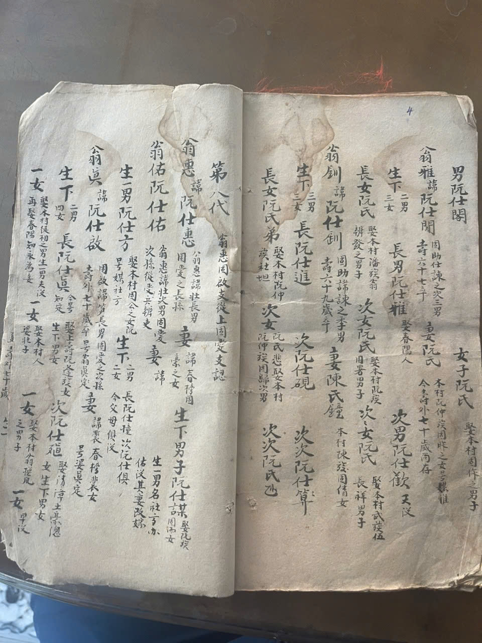 -Đệ thập đợi Hiển khảo Tiền bổn tổng tổng Giáo Dự Bổn thôn văn võ Hội Nho Trưởng Đăng Kỳ lão Thọ Nguyễn Mạnh Đường, Tự Thế Đức, Thụy Phác Hậu phủ quân, húy Kế - Sinh ất hợi niên; Tốt bính Tuất niên, thọ 72 tuổi, giỗ ngày 20 tháng 6.